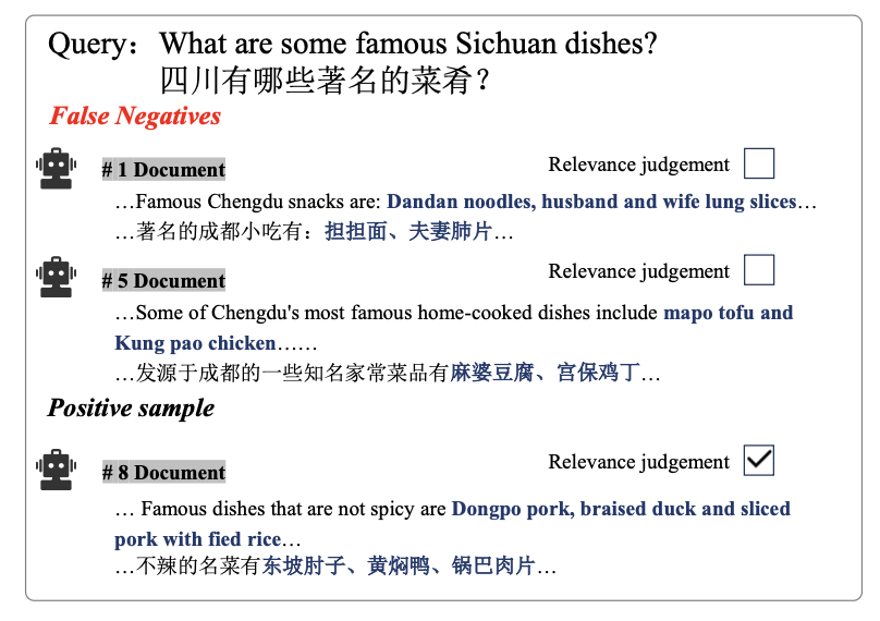 - 다양한 언어에 대해 신뢰성 있는 하드 네거티브 샘플을 확보