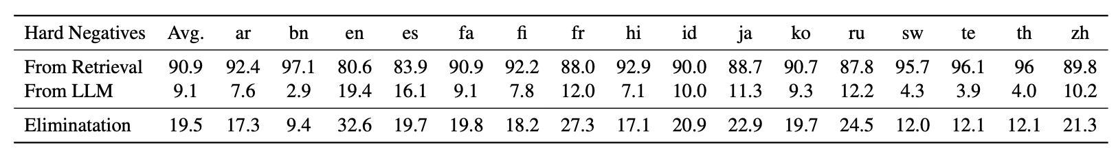 - Stage 2의 LLM 생성 샘플은 전체 hard negatives의 약 9.1% 차지