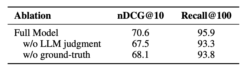 - 둘 다 제거 시 성능 하락, 특히 LLM judgment가 더 중요