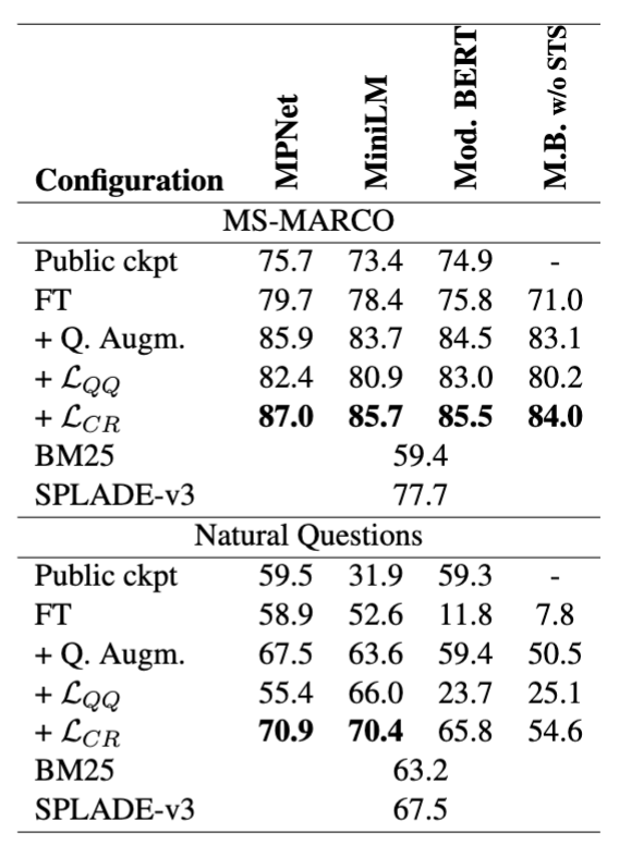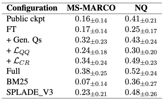 - MS-MARCO에서는 NDCG@10이 오히려 하락, NQ에서는 상승