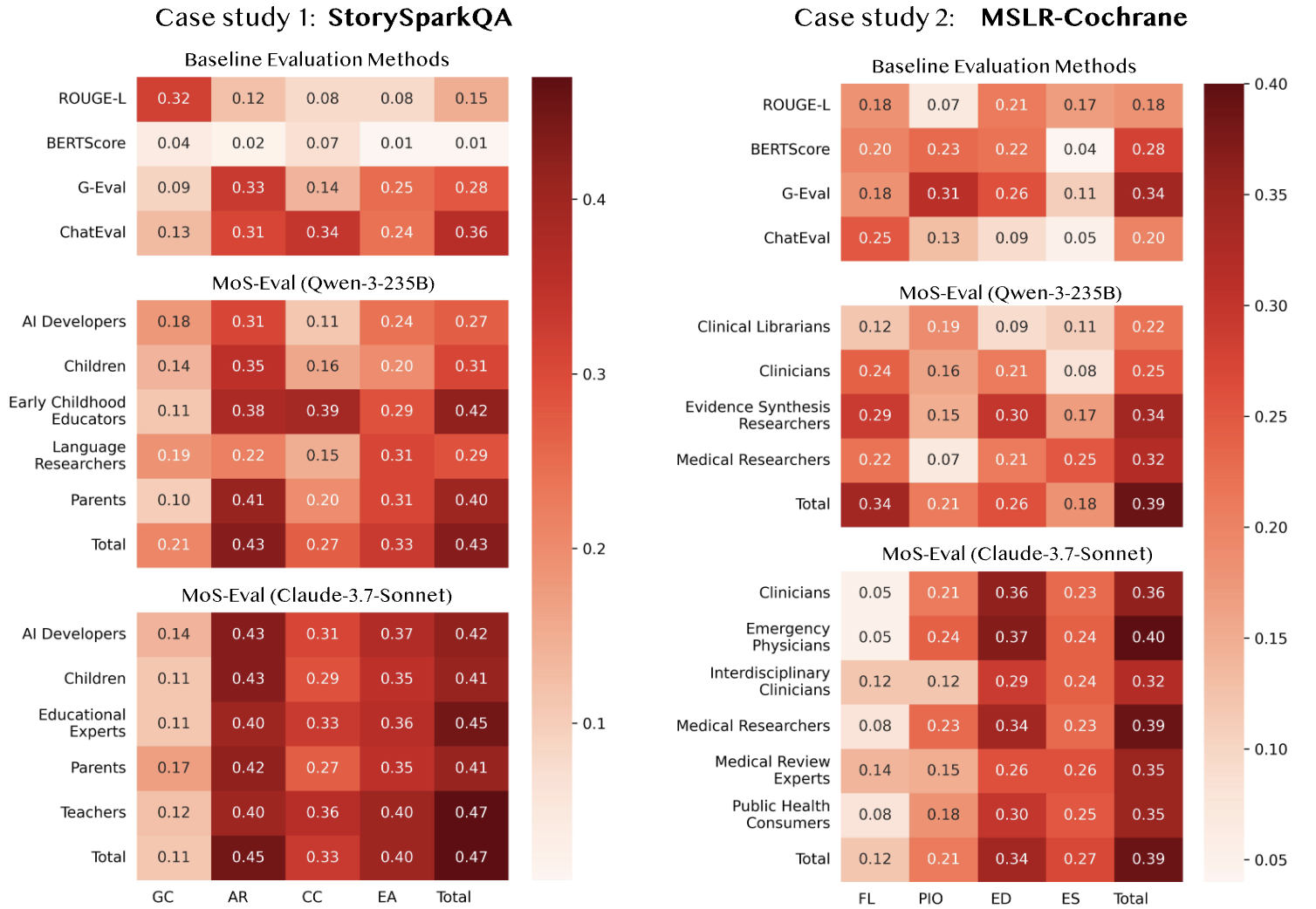 - MAJ-EVAL 기반 모델: Claude-3.7-Sonnet, Qwen-3-235B