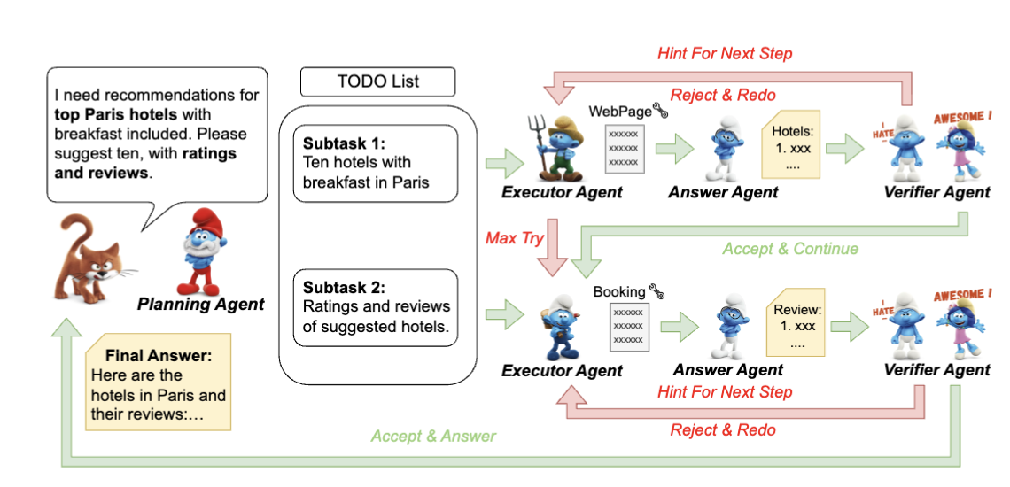 아래는 각 에이전트의 역할과 Smurfs의 시스템: